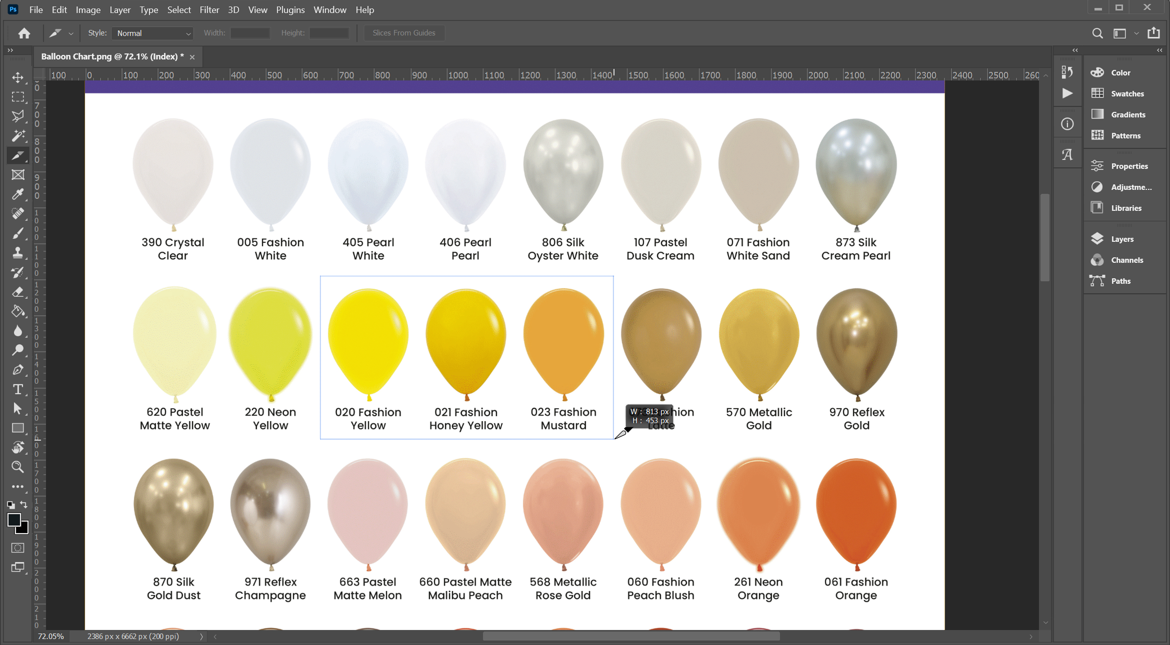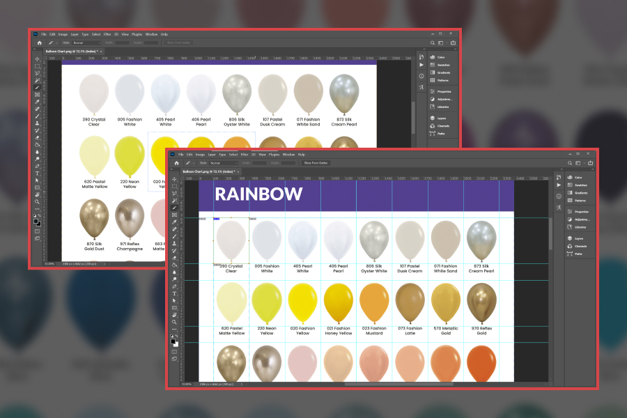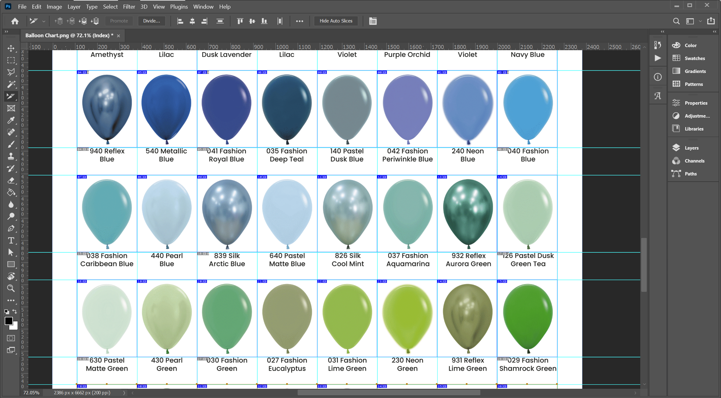 For our example, though, we’re working with a large grid of evenly spaced balloons. To make the slicing process faster and more uniform, we’ll set up a guide layout first.