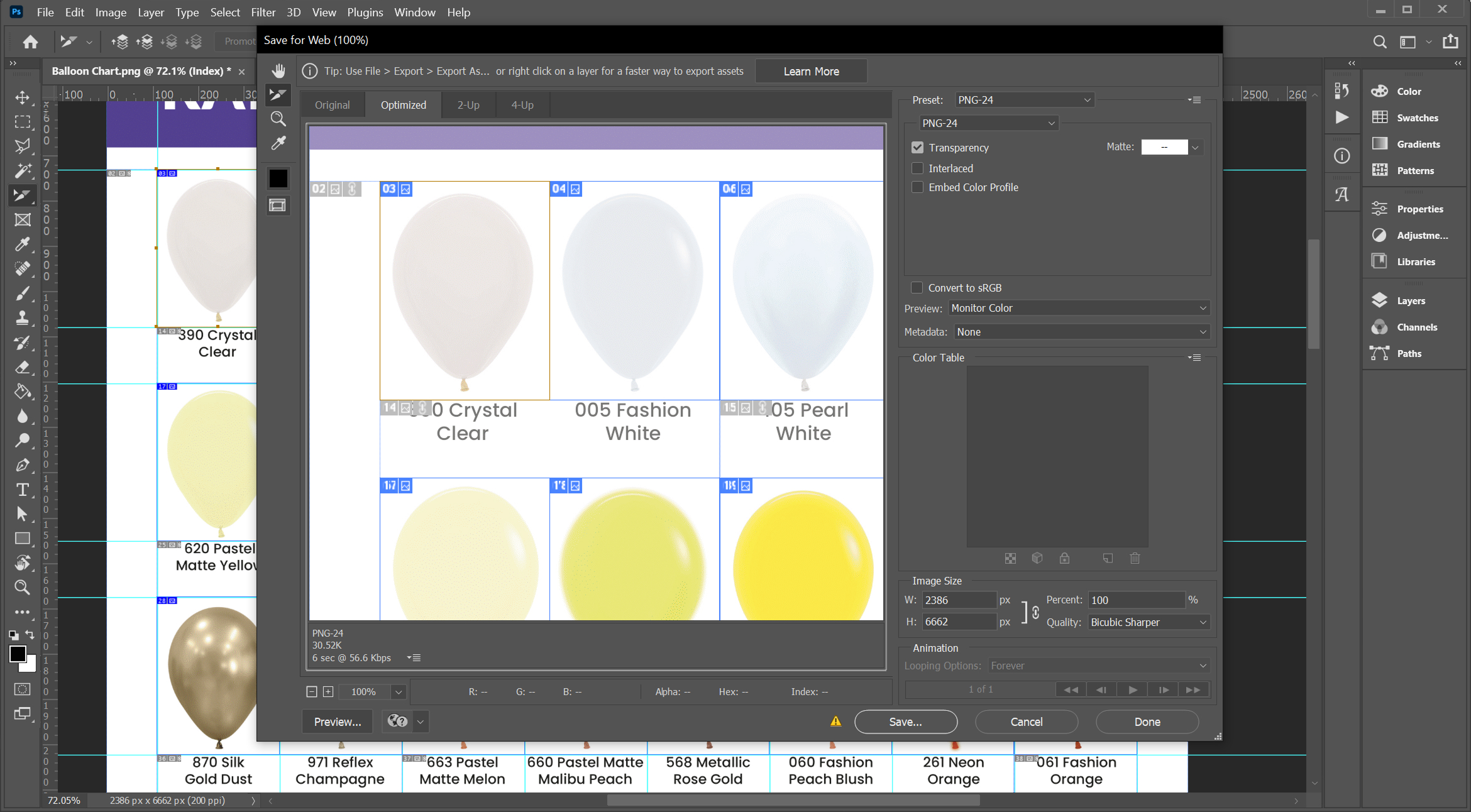 This method won’t magically create new layers within the Photoshop file, but it will give you a set of perfectly cropped images on export, ideal for product grids, icons, or any regularly arranged set of visuals.